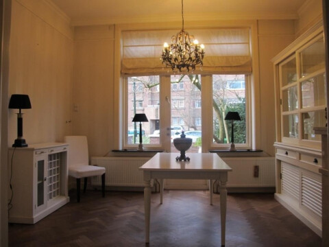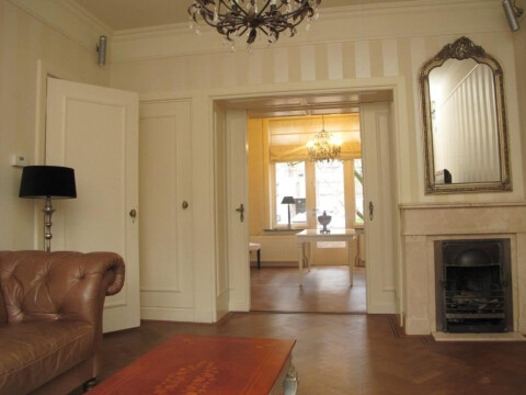 Temporary and luxurious and characteristic free standing villa at the Neuhuyskade in Benoordenhout. This spacious property of approx. 180m2 has a sunny garden all around. With 4 bedrooms and 2 bathrooms this is the perfect home for a family who also expects to have guests visit every now and then. The atmosphere in the house is chique and stately, high ceilings, characteristic ornaments and impressive stairs and fireplaces. Definitely worth a visit. Located at the edge of the famous Benoordenhout area in The Hague, overlooking The Hague forest. Near to the Central Station and the city centre. Public transport connections nearby with connections to Wassenaar, the beach area of The Hague and city centre.