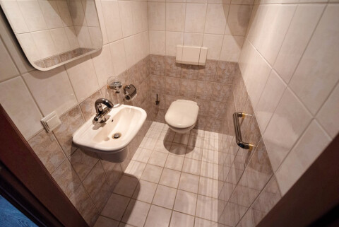 Bijkeuken van ca.: 2,7 x 2,8 welke ook via de hal te bereiken is, is voorzien van tweede koel/vriescombinatie en aan weerskanten inbouwkasten. Via de bijkeuken ook toegang tot achter gelegen patio. Kantoorruimte aan de voorzij de van ca.: 3,8 x 2,7 met vaste bureau en boeken/archief wandkast en inloopkast met kluis. Apart toilet met fontein en aparte meterkast in de hal.