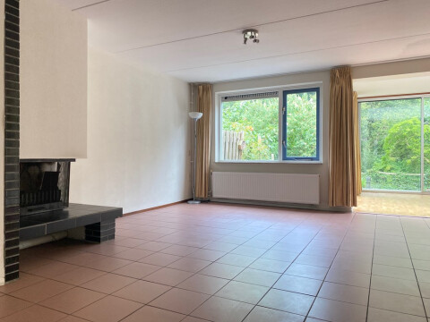 Entrance, hallway, entrance to the garage, guest toilet with hand wash basin, separate kitchen with dishwasher, fridge/ freezer combination, 4-burner gas stove extractor hood oven and plenty of cabinet space. Spacious living room with fireplace and acces to the back garden.